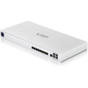Popis produktu UISP-R-Pro je ideální router díky svému výkonu pro nasazení do firemní sféry. Router disponuje 8x Gigabit LAN, 1x Gigabit WAN, 4x SFP+ (podpora 1G i 10G) porty pro další rozšíření pomocí optického vlákna a 1,3" LCD dotykovým displejem pro jednoduché zobrazení o stavu a zatížení routeru. UISP Router Pro je funkcemi i porty nabitý router s důrazem na kvalitu, spolehlivost a jednoduchost instalace. Router lze napájet primárně přes 230V AC ze sítě ale i přes 27V DC Power TransPort konektor pro případnou redundanci. UISP Router Pro je spravován POUZE pomocí aplikace UISP, centralizované platformy, kde můžete monitorovat a spravovat všechna vaše zařízení UISP. Klíčové vlastnosti • (8) Gigabit LAN + (1) Gigabit WAN • (4) 10G SFP+ port • Montáž do 19" racku • Až 9500 Mbps propustnost v NATu / 2250 Mbps propustnost s QoS • Podpora Firewallu, OSPF routingu a shapingu • Napájení přes 230V AC ale i přes Power TransPort pro DC redundanci • Snadné nastavení pomocí technologie Bluetooth prostřednictvím mobilní aplikace UISP 1.4.5 a vyšší Obsah balení • Zařízení • Napájecí kabel • Rackmount kit Technické parametry Konektory a rozhraní Možnost více WAN:Ano Rychlost LAN:(8) 10/100/1000Mbps Gigabit LAN:Ano Optické rozhraní:(4) 1G/10Gbps Ostatní:Dotykový displej, Bluetooth Napájení Typ napájení:DC konektor, Ze sítě (230V) Redundantní napájení:Ano Max. spotřeba energie [W]:50 Napájení přes konektor/svorkovnici:27V DC, 230V AC Fyzické charakteristiky Provedení:Rackmount Šasi:Kovové Tlačítka:Reset Provozní teplota [°C]:-10 až 50 Šířka [mm]:442 Výška [mm]:44 Hloubka [mm]:200 Hardware CPU:ARM Cortex-A57 Frekvence CPU [MHz]:1700 Počet CPU jader:4 RAM [MB]:4096 Obecné Propustnost NAT [Mb/s]:9500 Software Management:UISP aplikace.