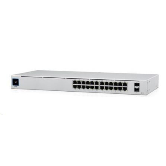 Popis produktu USW-24-POE je managovatelný Gigabitový L2 switch s 24x Gigabit LAN porty, z čehož 16 portů podporuje 802.3af/at PoE-Out, celkovým PoE budgetem 95W a dvěmi porty SFP s maximální přenosovou rychlostí 1Gbps. Switch má kromě standardní výbavy také 1,3" dotykovým displej pro poskytování informací o systému, teplotě, statistice portů, PoE napájení a mnoho dalšího. S velmi malou hloubkou pouhých 20cm lze tento switch bez ventilátoru snadno instalovat do jakéhokoliv 19" datového rozvaděče. Správa přes UniFi Controller USW-24-POE, spravovaná a konfigurovaná UniFi Network Controller s podporou mobilních aplikací UniFi, nabízí rozsáhlou sadu pokročilých přepínacích protokolů a funkcí L2, včetně provozního režimu (přepínání, zrcadlení nebo agregace) na port. UniFi Network Controller a mobilní aplikace umožňují správcům konfigurovat a sledovat prakticky všechny funkce přepínače v grafickém uživatelském rozhraní odkudkoli. Obsah balení • Zařízení • Napájecí kabel • Úchyty do 19" racku Technické parametry Konektory a rozhraní Rychlost LAN:(24) 10/100/1000Mbps Optické rozhraní:(2) 1000Mbps Ostatní:Dotykový displej Napájení Typ napájení:Ze sítě (230V) Typy PoE:PoE-Out (pouze) Podporované PoE-Out standardy:802.3af, 802.3at Počet PoE Out portů:16 PoE budget [W]:95 Max. spotřeba energie [W]:25 Napájení přes konektor/svorkovnici:230V AC Fyzické charakteristiky Provedení:Rackmount Ventilátory:Ne Šasi:Kovové Provozní teplota [°C]:-5 až 40 Šířka [mm]:442 Výška [mm]:44 Hloubka [mm]:200 Obecné Rychlost přepínání [Gbps]:52 Tabulka MAC adres:16000 Jumbo rámec [Bytes]:9000 Rychlost předávání paketů [Mpps]:38,69 Software Management:UniFi Network Funkce:VLAN, DHCP snooping Výchozí IP adresa:192.168.1.20, Dynamická z DHCP Výchozí jméno a heslo:ubnt / ubnt.