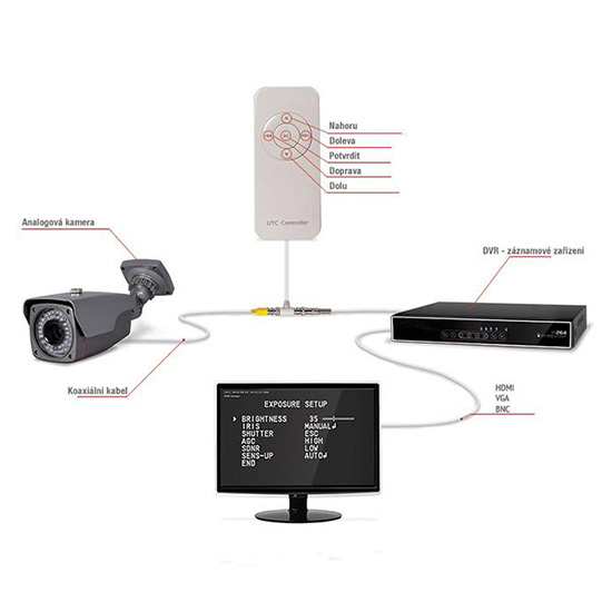 UTC OSD ovladač pro ekonomické typy kamer bez OSD ovladače, který umožňuje snadné nastavení analogových kamer ze strany záznamového zařízení. Není nutné přistupovat ke každé kameře a nastavovat volby jako BLC, WDR na straně kamery. Zařízení podporuje jen vybrané typy kamer převážně kompatibilní s kamerami využívajícími čip Sony 700tvl.