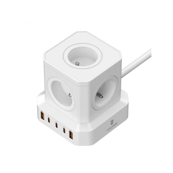 Viking ACT55 kombinuje pět výkonných USB portů (3× USB-C a 2x USB-A), pět AC zásuvek a 2m prodlužovací kabel v jednom kompaktním zařízení, které umožňuje současné napájení až 10 zařízení.