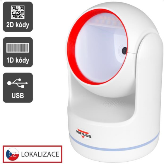Čtečka pro obchod, s vysokou citlivostí čtení 1D a 2D čárových kódů různé velikosti. Rychlá, všesměrová, stacionární čtečka umí číst čárové kódy z různých povrchů, a to např. i z průhledných obalů nebo displejů, rychle dekóduje i obtížně čitelné, rozmazané a pomačkané kódy. Čtečka je vybavena USB rozhraním umožňujícím emulovat klávesnici i sériový port. Čtečka je odolná proti prachu a vodě dle IP54.