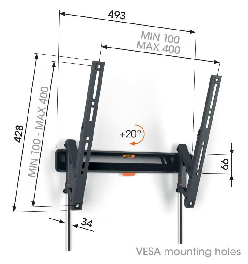 TV 32-65", náklon 20°, hloubka 34 mm, VESA do 400x400, 25 kg.Více