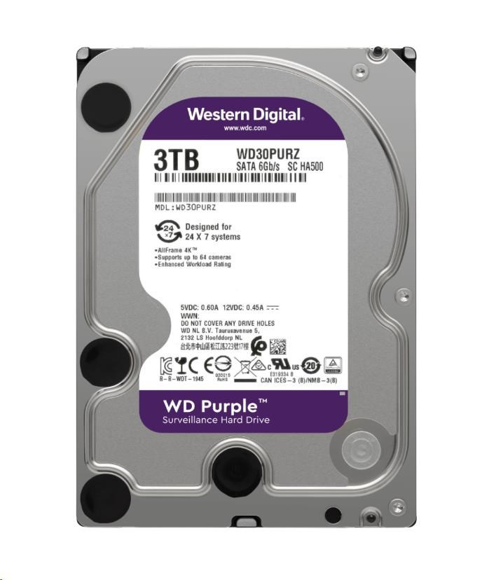 WD PURPLE WD34PURZ 3TB, SATA III 3.5", 128MB, 175MB/s, Low Noise, CMR