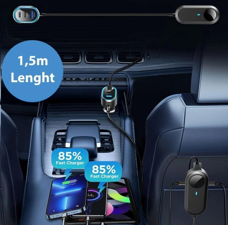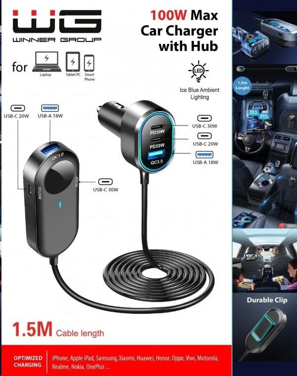 WG - Autonabíječka rozbočovač / 100W / 6 USB ports / 2x USB-A + 4x USB-C / s prodloužením