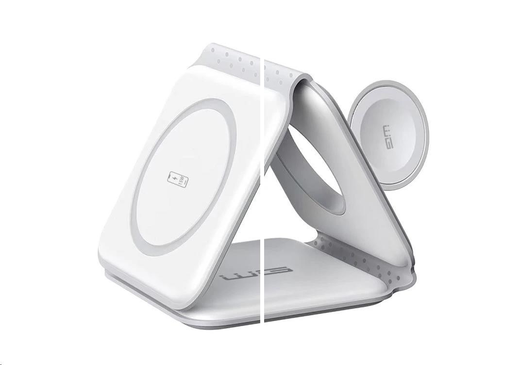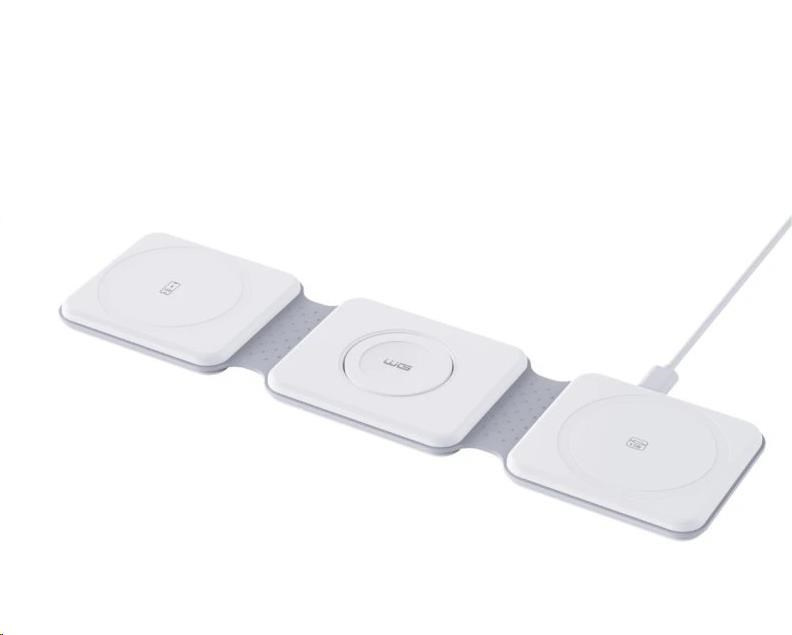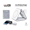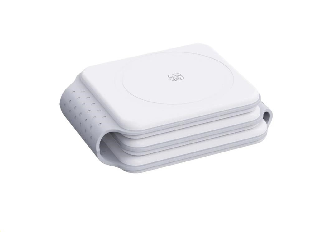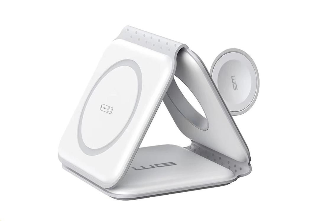 Užijte si pohodlné a stylové nabíjení s bezdrátovou nabíječkou WG 42 MaxFlex 3v1. Tento multifunkční gadget umožňuje nabíjet iPhone nebo Android telefon, Apple Watch a sluchátka současně. Díky skládacímu designu je ideální na cesty, zároveň poslouží jako elegantní stojánek na váš stůl.
