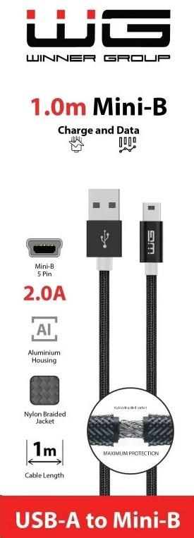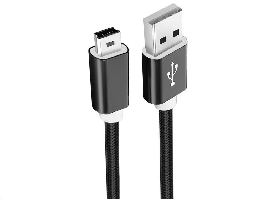 WG - Datový kabel USB Mini-B (5 pins)-USB-A / 1m / nylon braided / black