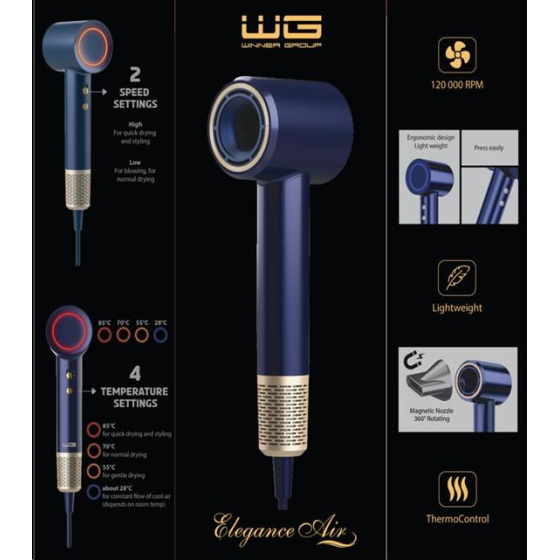 Fén na vlasy WG Elegance Air Elegantní a výkonný fén na vlasy WG Elegance Air je navržen pro snadné Více