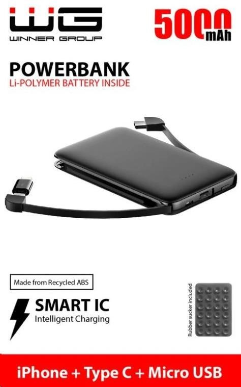Svým přitažlivým designem a kompaktní konstrukcí se tato powerbanka přímo nabízí jako neodlučný společník do kapsy. Největší předností této powerbanky je však všestrannost. Pomocí dvou zabudovaných napájecích kabelů (micro USB a USB-C), a redukce lightning, umožní nabít jakýkoliv smartphone. Elegantní indikátor stavu, je decentně vkomponován na přední straně powerbanky, a tak máte přehled o aktuálním stavu zásoby energie. Když se powerbanka vybije, jednoduše jí nabijete micro USB kablíkem, který je přiložen v balení.
