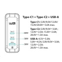 - USB-C1/C2 +USB-A: 5V/9V/12V/15V?3A, 20V?4.35A max (87W+30W)