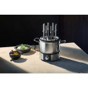 Pozvěte svou rodinu a přátele a užívejte si a oslavujte společně. WMF Lono Fondue udělá ze speciálních pokrmů sdílené potěšení. S osmi vidličkami na fondue z Cromargan® a 1,5 litrovým hrncem je tato zimní klasika ozdobou každého stolu. Variabilní nastavení teploty a výkon 1400 wattů bleskově zahřejí olej nebo vývar. A navíc: vidličky si nemohou navzájem překážet. Každá vidlička má svou vlastní pozici na okraji hrnce.