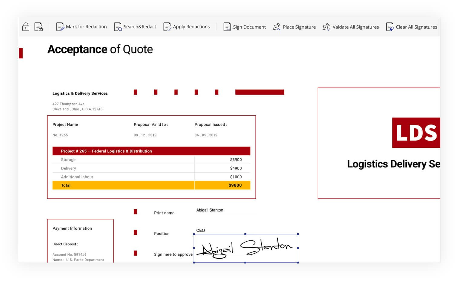 Ochrana PDF a vašich informací - Přidejte heslo a zabezpečte své soubory PDF. Vytvořte podpis a podepište své dokumenty elektronickým podpisem. Redigujte PDF a odstraňte všechny citlivé informace.